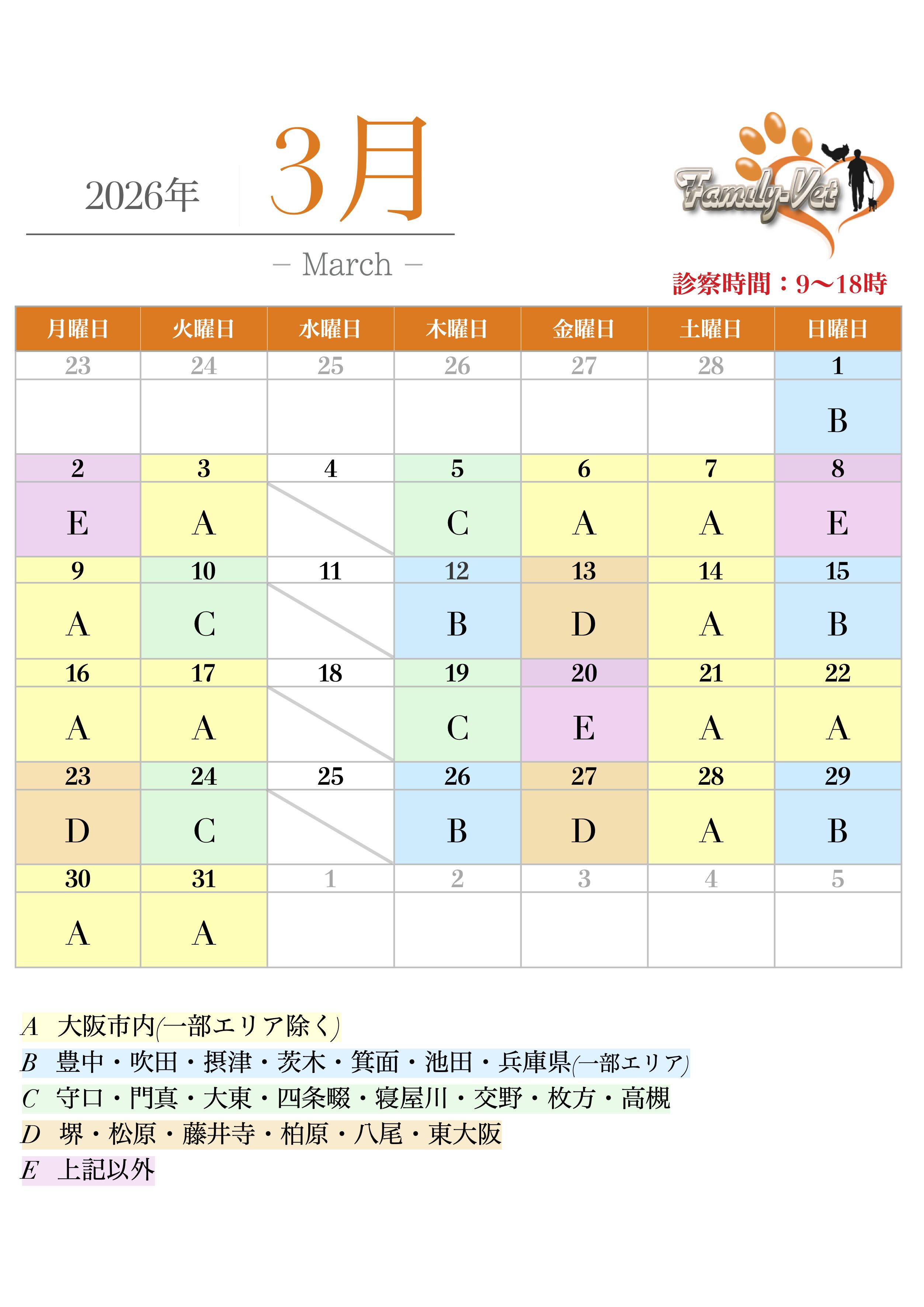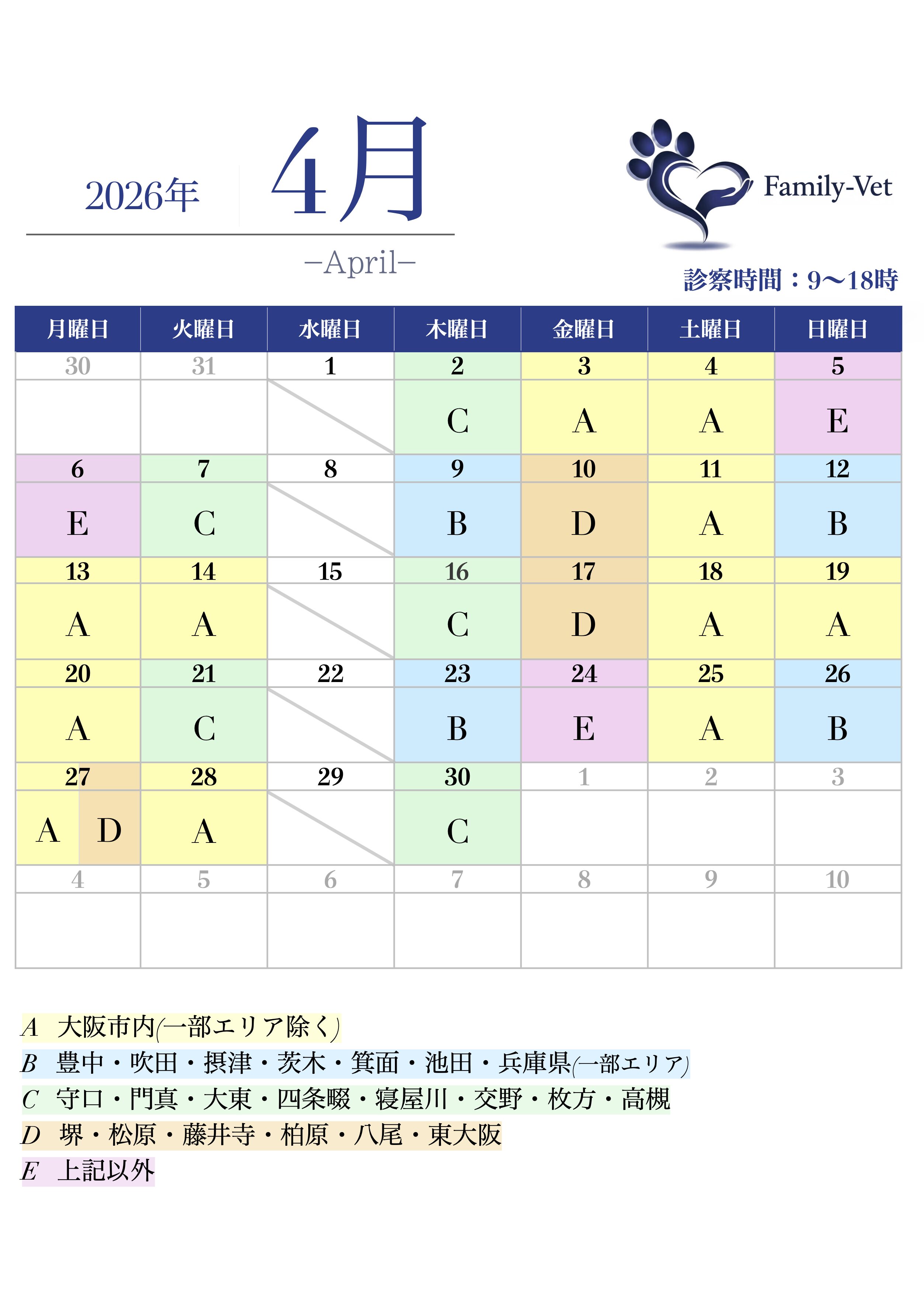 訪問エリアカレンダー